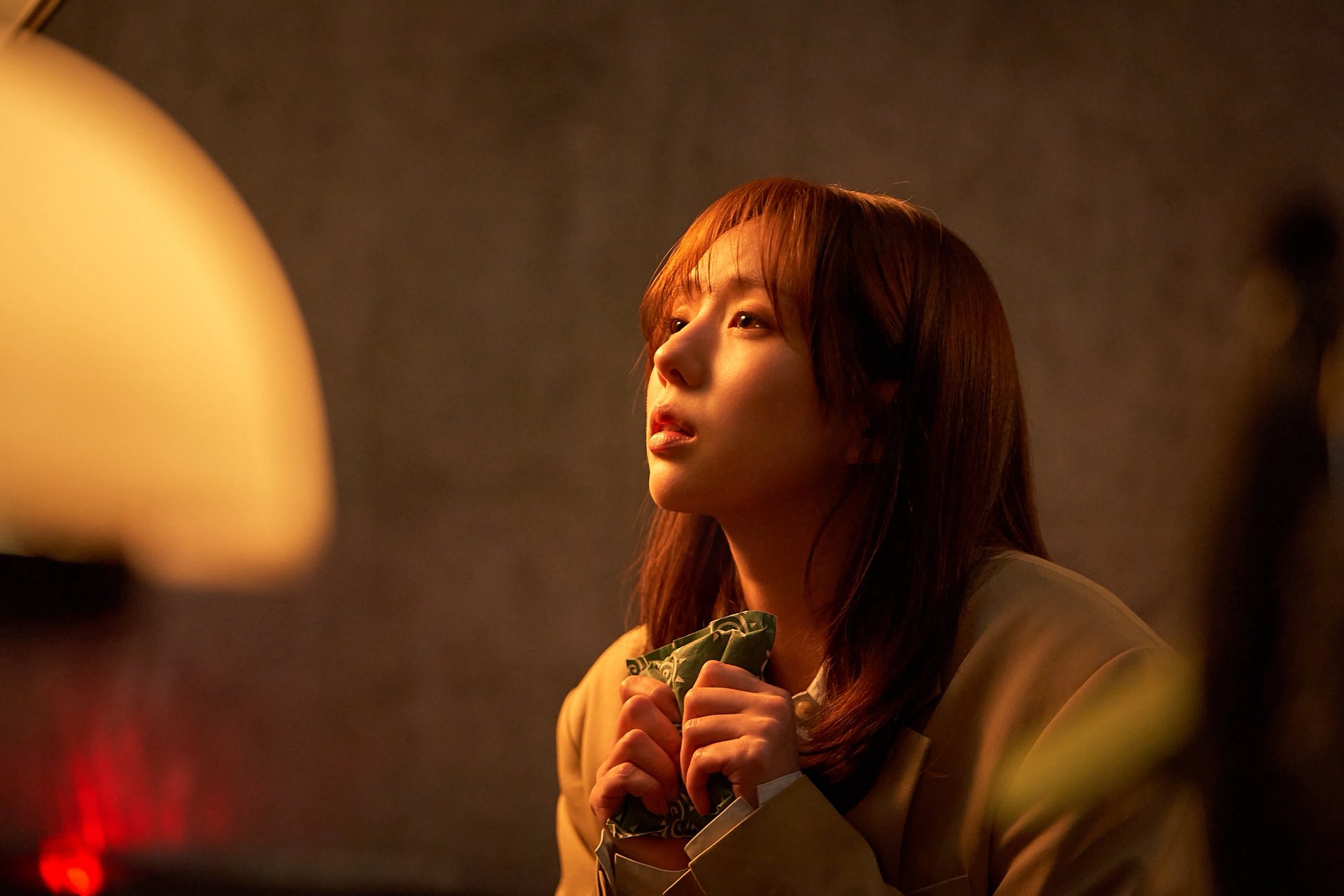 Pandangan yang tajam serta wajah yang penuh makna mencerminkan kedalaman dan ketulusan dalam memerankan karakter Kim Dok Ja.